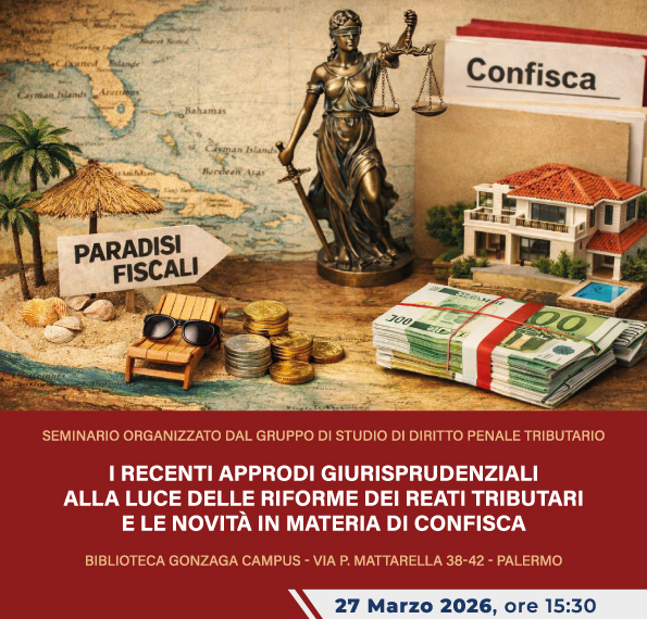 Il 27 Marzo 2026, alle ore 15:30, presso la Biblioteca Gonzaga Campus di Palermo (Via P. Mattarella 38-42), si terrà un importante seminario tecnico organizzato dal Gruppo di Studio di Diritto Penale Tributario della Camera Avvocati Tributaristi di Palermo. L’incontro si propone di analizzare l’evoluzione del sistema penale-tributario, con particolare riferimento alle recenti riforme legislative…